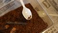 マットは汚れたら入れ替えるそうですが、その際は使っていたものを半分くらい混ぜた方がストレスがなく良いとのことです。しかし、ゼリーまみれのため、今回は全部新しいもので作ります。ちっこい方の業者が仕事をします。